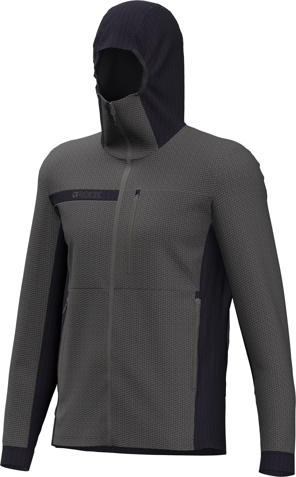 - Mix di fleece high-loft (calore) e fleece a rilievo esagonale su fianchi, sottomanica, polsi e fondo schiena per trattenere calore e favorire il wicking