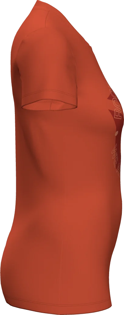 DIMORE DEGLI DEI è una T-shirt da donna REGULAR FIT a manica corta, pensata per l’uso quotidiano tra città e outdoor. Il single jersey con 62% poliestere riciclato e 33% cotone certificato OCS unisce morbidezza, traspirazione e asciugatura rapida; il 5% di elastan assicura elasticità e vestibilità confortevole. Finitura “peach” per una mano setosa sulla pelle. Maxi stampa frontale “Rock Experience • We Are Rock” a dichiarare l’attitudine, con bridge label sul fondo. Peso taglia S: 135 g.